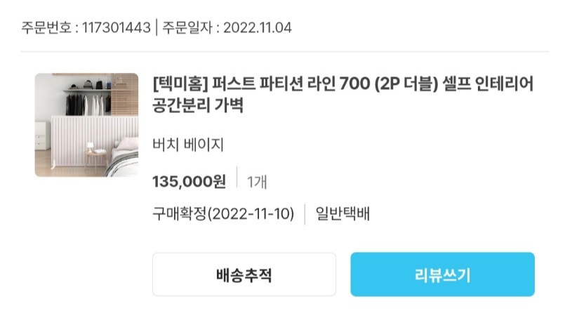 - 특이사항 : 70cm 2개 140cm, 파티션 자체는 가벼움, 고정은 좀 힘듦