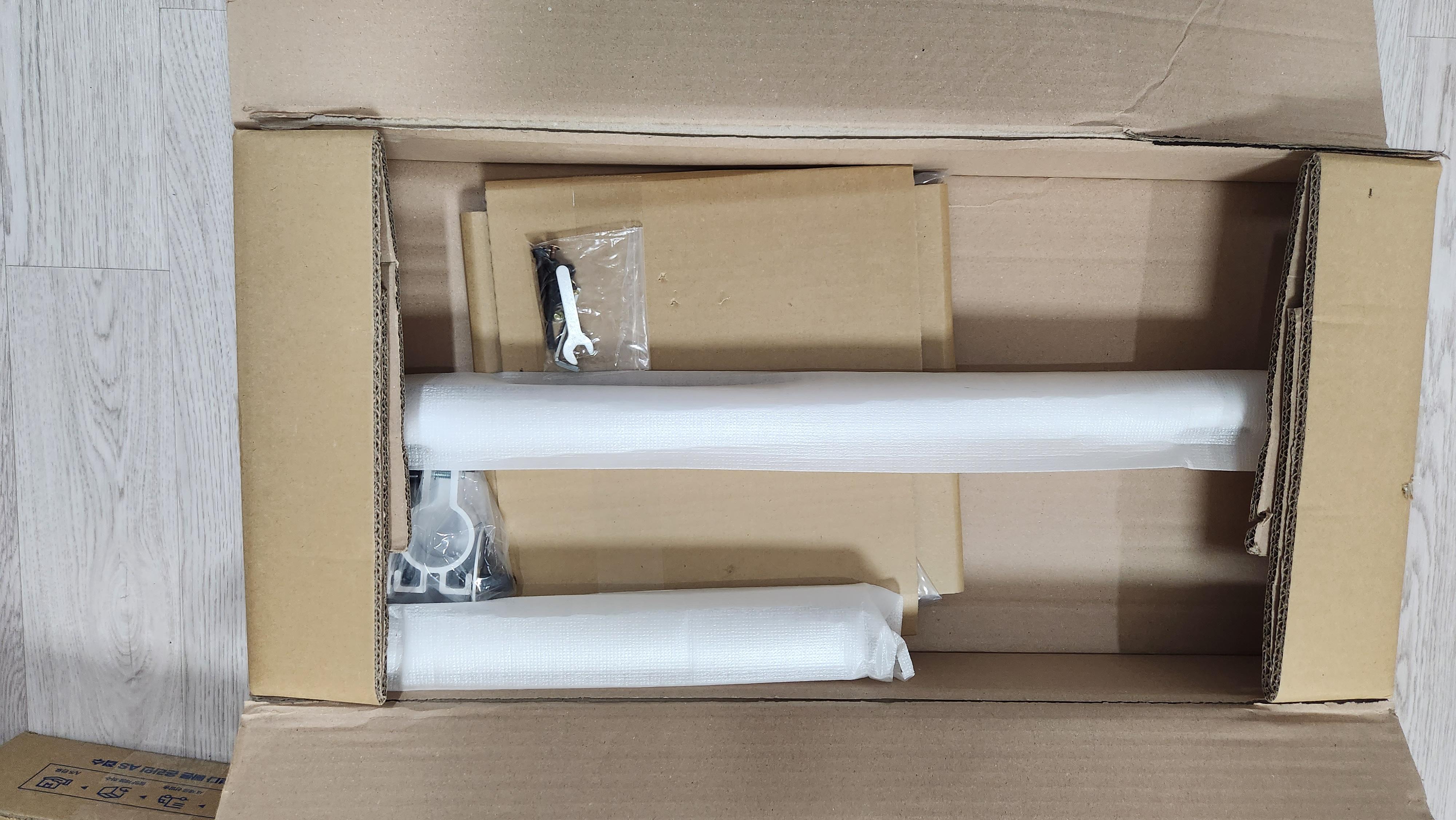 안에 납작한 종이박스 안에 철제 기본 받침대가