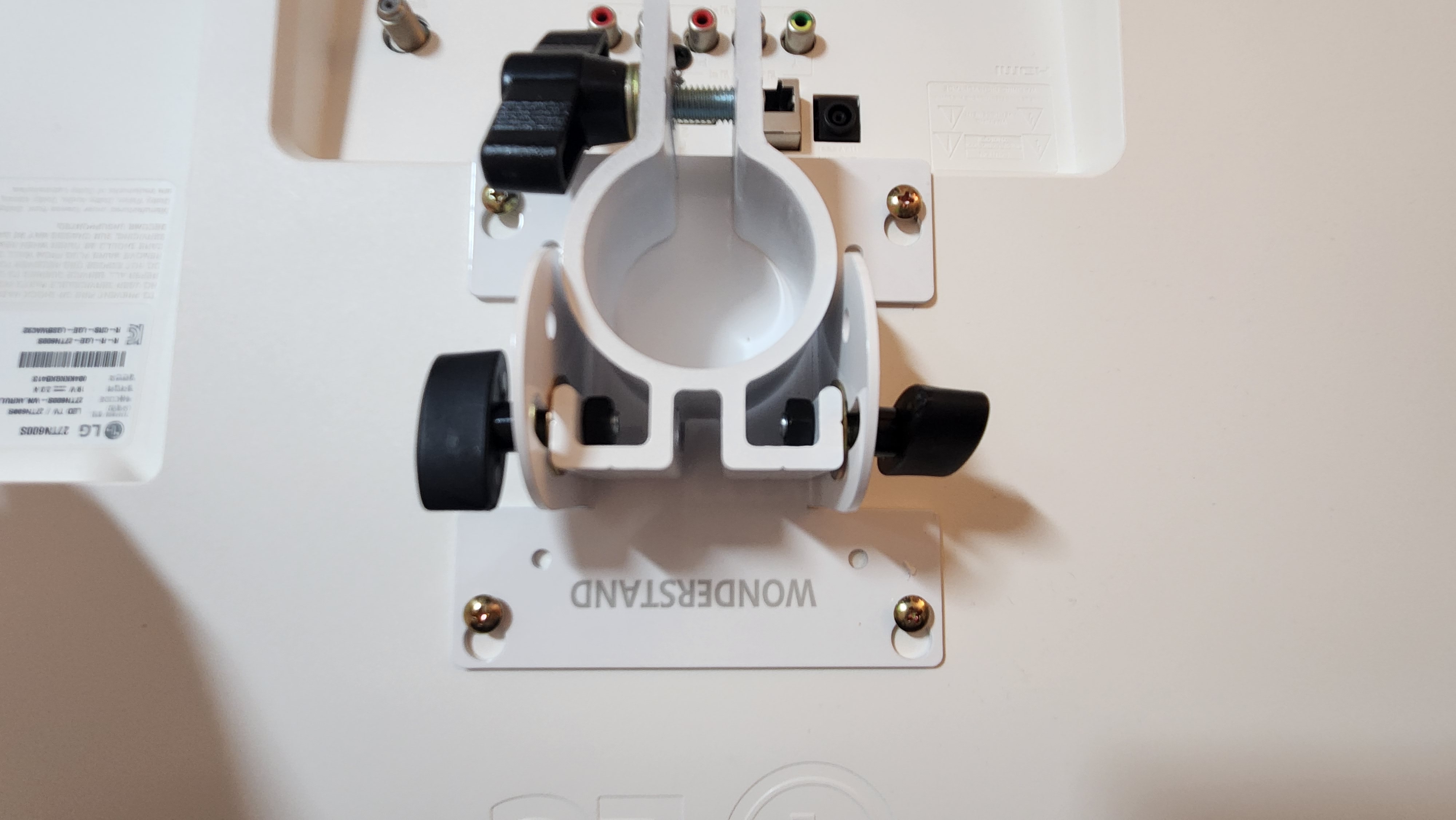 위에 조임쇠를 달아놓은 TV를 끼우면 끝
